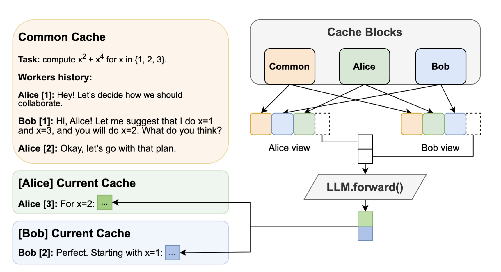 In this work, we propose a different design approach: we run LLM “workers” in parallel, allowing them to synchronize via a concurrently-updated attention cache and prompt these workers to decide how best to collaborate. Our approach allows the LLM instances to come up with their own collaboration strategy for the problem at hand, all the while “seeing” each other’s memory in the concurrent KV cache. We implement this approach via Hogwild! Inference: a parallel LLM inference engine where multiple instances of the same LLM run in parallel with the same attention cache, with “instant” access to each other’s memory.